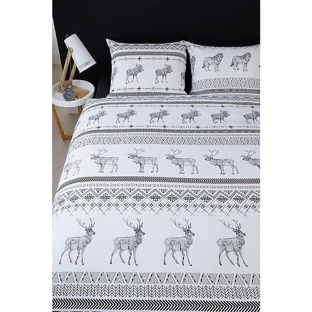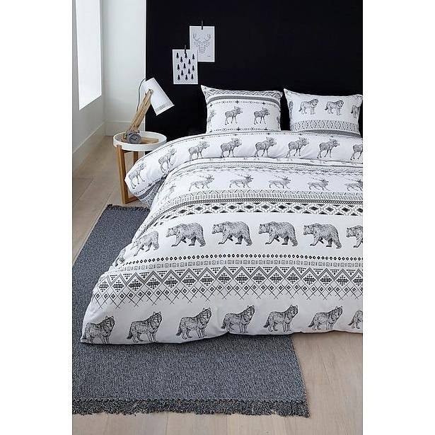 Dit dekbedovertrek Brent is van het merk Ambiante. Het overtrek is gemaakt van flanel en voelt zacht aan. De voor- en achterkant van het overtrek hebben een gestreept dessin met grafische strepen en afbeeldingen van herten, wolven, beren en elanden. Het overtrek is gemaakt van flanel en voelt heel zacht aan. Katoen is een sterk en duurzaam product die goed ademt en vocht op neemt. Hier door slaap je altijd fijn en fris. Dit dekbedovertrek geeft een winterse look en feel aan je slaapkamer.