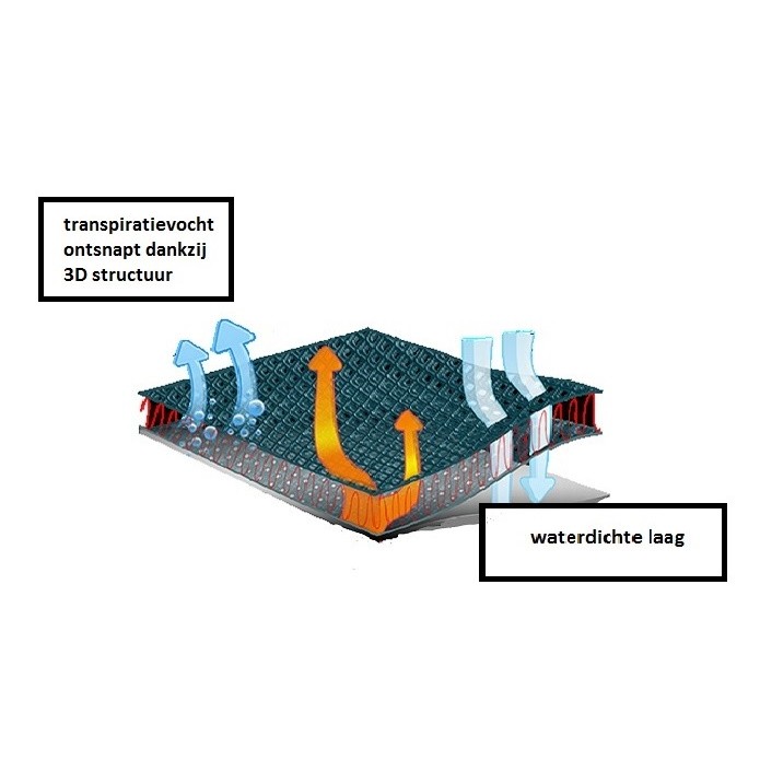 De open structuur van de 3D toplaag garandeert een optimale ventilatie waardoor vochtige, warme lucht effectief wordt afgevoerd.