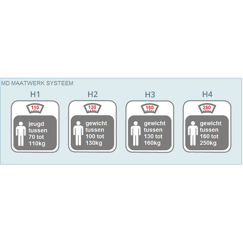 Het MDplus matras geeft de juiste lichaamsondersteuning en is geschikt voor de juiste gewichtsklasse.